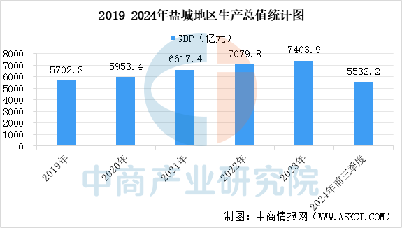 2023年★★◆■★,盐城市全年实现地区生产总值7403.9亿元★★■,在江苏省内各市中经济总量排名第八位。按2022年末常住人口计算,盐城市2023年人均生产总值为110676元■★■★。2024年前三季度,根据地区生产总值统一核算结果★■,盐城市实现地区生产总值5532.2亿元,按不变价格计算■■■◆◆,同比增长5.4%■★■■。其中,第一产业增加值488.6亿元■◆◆■,增长2.7%;第二产业增加值2207★◆.1亿元,增长4.9%;第三产业增加值2836◆★★★◆■.6亿元,增长6◆◆◆★■◆.2%★◆■◆★。